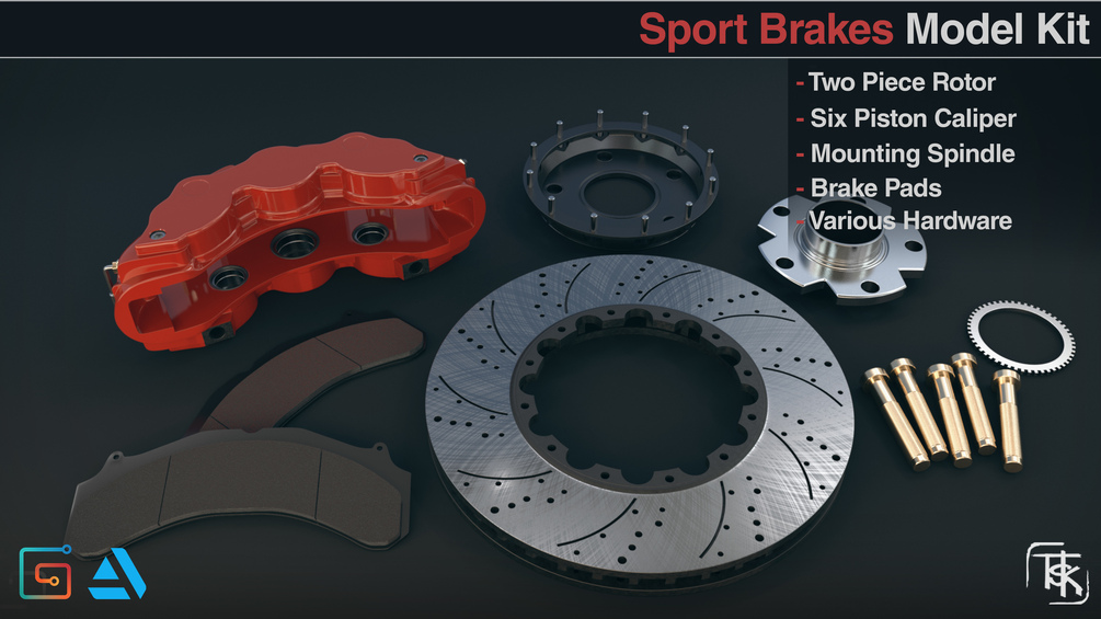 A high quality pack containing a realistic brake rotor, six piston caliper, and brake pads. Sub-D geometry lets you subdivide as many times as you want for those extreme close ups, or import into Zbrush for sculpting. Spice up your vehicle renders or simply use for educational purposes. Comes with fully unwrapped UVs.